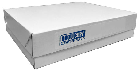 DocuCopy 199831258 Gen2 Clear Trilar Copier Tabs offer professional-grade organization for your document management needs. These made-to-order tabs feature 90# white index stock with Gen2 clear trilar construction, designed for durability and clarity. Each sheet measures 11" x 9" (with a convenient 1/2" tab extension) and comes in cartons of 1040 sheets (40 sets). The 26th cut configuration with reverse collation and no holes provides flexible placement options for your filing system. Compatible with laser and toner printers, these tabs deliver crisp, professional results. Weighing 25 lb per carton with compact dimensions of 21x13x9 inches, they're easy to store and transport. Perfect for businesses requiring reliable, high-volume document indexing solutions.